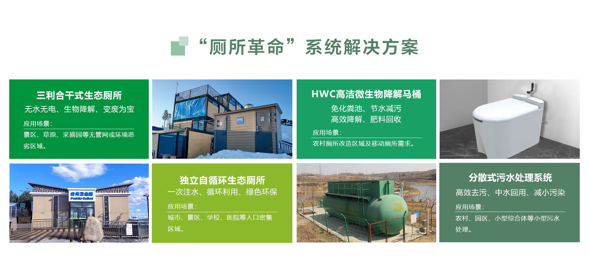 我們專(zhuān)注于“源頭”上的廁所革命,系統(tǒng)解決景區(qū)(點(diǎn))、城市和農(nóng)村三大領(lǐng)域的實(shí)際需求,是真正意義上的生態(tài)環(huán)保廁所。